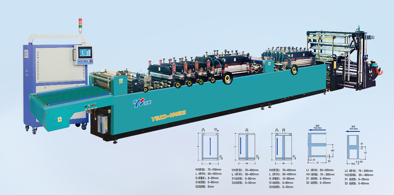YSZD-400B Ⅱ中封、三邊封、四邊封高速全自動(dòng)制袋機(jī) YSZD-300/400/500ZF中封、側(cè)封、四邊封高速全自動(dòng)制袋機(jī) YSZD-500ZF中封、側(cè)封、四邊封高速全自動(dòng)制袋機(jī) YSZD-500/600/700/800/1000H三邊封高速全自動(dòng)制袋機(jī) YSZD-600C無接縫站立袋三邊封、站立袋高速全自動(dòng)制袋機(jī) YSZD-500HK三邊封、站立袋、拉鏈袋、無接縫站立拉鏈袋、儲(chǔ)料架高速全自動(dòng)制袋機(jī) YSZD-600HB三邊封、站立袋、拉鏈袋高速全自動(dòng)制袋機(jī) YSZD-600HK三邊封、站立袋、拉鏈袋、無接縫站立拉鏈袋高速全自動(dòng)制袋機(jī) YSZD-600HK Ⅰ上下圖案跟蹤三邊封、站立袋、拉鏈袋、無接縫站立拉鏈袋高速全自動(dòng)制袋機(jī) YSZD-600HK Ⅱ CCD視覺定位裁切三邊封、站立袋、拉鏈袋、無接縫站立拉鏈袋高速全自動(dòng)制袋機(jī) YSZD-800HK三邊封、站立袋、拉鏈袋、無接縫站立拉鏈袋高速全自動(dòng)制袋機(jī)
